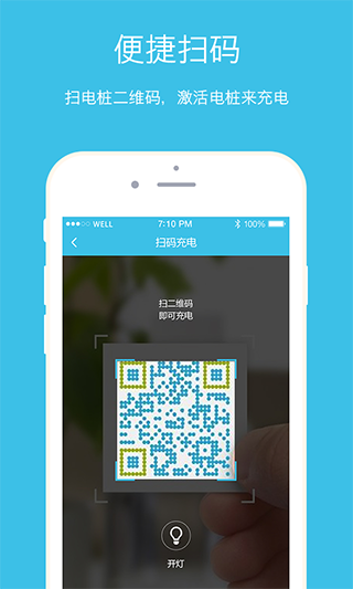扫码充电——扫描电桩屏幕上的二维码,快速开启充电。