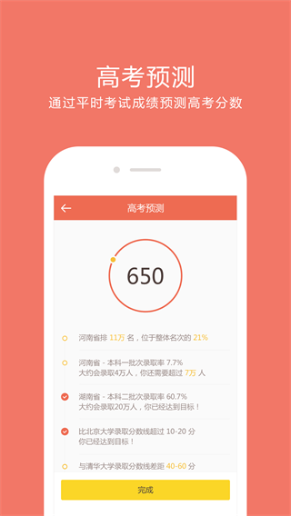 4、成绩:记录每次考试得分、排名,模拟任意得分查看排名,学习定位更精准更方便。