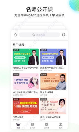 3、学生可以在平台里进行搜索,帮助你快速的找到老师和课程,更好的学习;