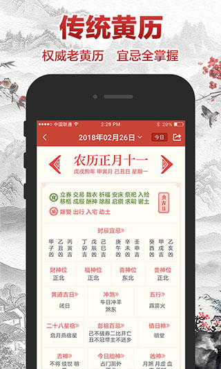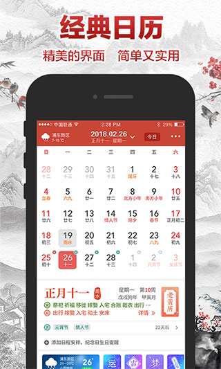 5、界面简洁实用,不冗余,凸显中国风,做优质准确的中国日历万年历。