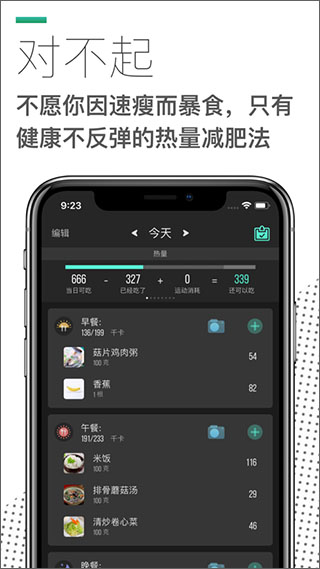 2、独创热量管理减肥法,致力于探寻科学高效的减肥方法,帮助您计算食物热量卡路里(kcal),控制热量摄入及消耗,建立既能减肥又不忍饥挨饿的健康饮食习惯;