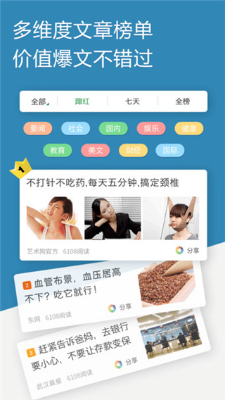 每日精彩资讯,让你一手掌握天下精彩事。 包括社会、财经、娱乐、健康、体育等各类新鲜内容,全面覆盖热点领域,让你的碎片化时间不再无趣!
