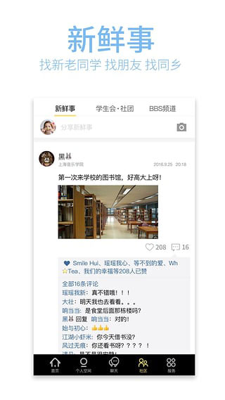 2、聊天、交友,盘点校园生活、参与事件评说、积极展现自我,趣事热门话题一应俱全。