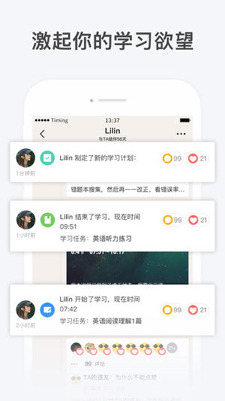 实时跟进,学习状况一目了然,还可以看到别人的学习进度。