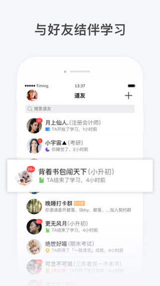 学渣抱大腿、学霸涨声望,道友间相互督促、相互激励,学习效率更高,学习路上不再孤单!