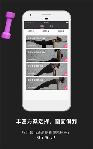 运动视频、减肥餐单,多种运动饮食方案,自由安排适合自己的减肥日程。