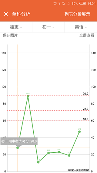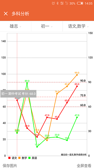 2、点击单科分析按钮即可查看该科目的成绩分析图表。