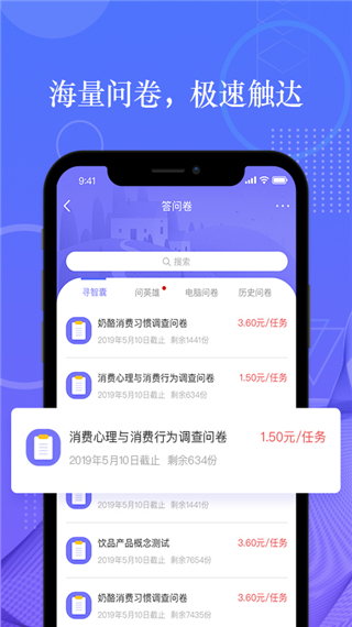 3、【答问卷】根据自己的时间,随时随地参与在线问卷,并获得相应的奖励。