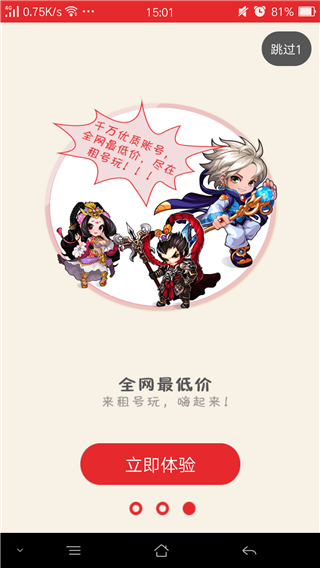 对于游戏玩家来说,如果想要和朋友开黑但是没有账号,那么去租借一个账号,就可以很好的帮助用户解决这个问题,所以小编为你准备了一个不错的工具,它就是租号玩官方版app,这个程序提供了非常强大的游戏账户租赁服务,让用户可以在程序租借到各种装备齐全,并且提供了账户信息的游戏账号,让你可以通过这个平台进行账户的租借,而且租号玩手机版提供了短租的服务,用户可以按照每一个小时的租赁时长作为单位,让你可以针对游戏的需求选择不同的时长进行游戏,如果你和朋友玩得火热,更是可以通过这个程序实现快速续租的服务,让你可以继续游戏的同时完成租赁合约的续签工作,非常简单,而且这个平台需要玩家支付的押金也非常低,让你可以轻松选择热门游戏账户,赶快使用吧。