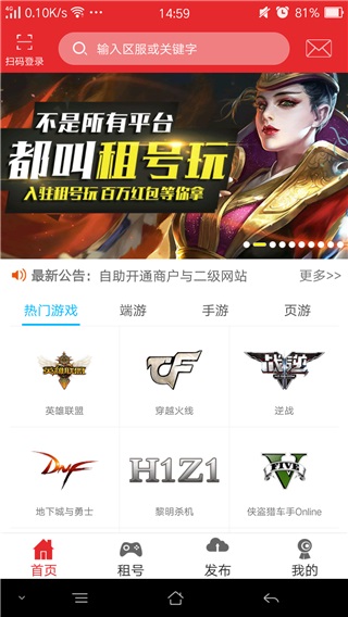 服务全球的账号租赁平台,3千万用户在通过租号玩进行账号租赁,10万号主在平台出租账号,全平台账号1元可租。