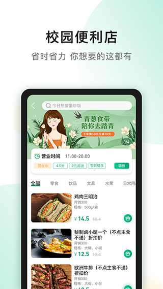 4、为广大在校师生提供快捷方便的校园外卖服务。