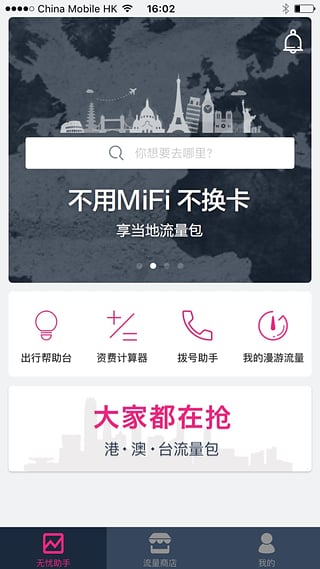 特点一:中国移动境外流量包即买即用,境外免费网络电话想打就打