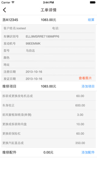3.可以查看本月接车数、收款金额、结算金额、客户订单等。