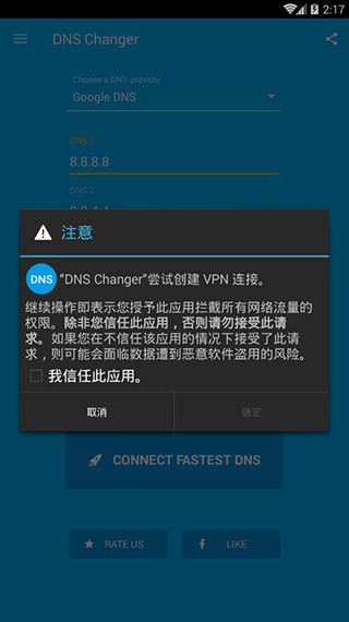 很多手机用户在使用自己手机连接网络进行上网服务的时候,会出现像是突然网页打不开,不能正常上网的情况,一般来说,如果不是硬件设备出了问题,那么就一定是用户的网络配置出现问题,今天小编为你准备了一个好用的家庭网络设置工具,它就是dns changer,这个程序为用户提供了优秀的DNS设置功能,因为这个配置的问题,在偶然情况下会影响到用户网络的访问,所以通过这个一键配置的功能,dns changer会自动完成用户当前网络的配置问题,将一些常用的DNS路由表输入到用户的网络之中,那么你再尝试进行网络连接和访问就会发现恢复正常,所以在硬件设备没有问题的基础上,无法连接网络,你可以试试这个程序,让它为你提供最好的DNS管理配置帮助吧。