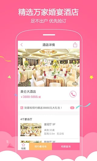 比实体店便宜,每月数以万计的新人通过app预定婚礼场所,所以商户永远把优惠的价格与套系,让利给新人