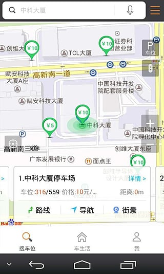 9、精准显示目的地周边停车场位置,实时剩余车位,类型和收费详情;