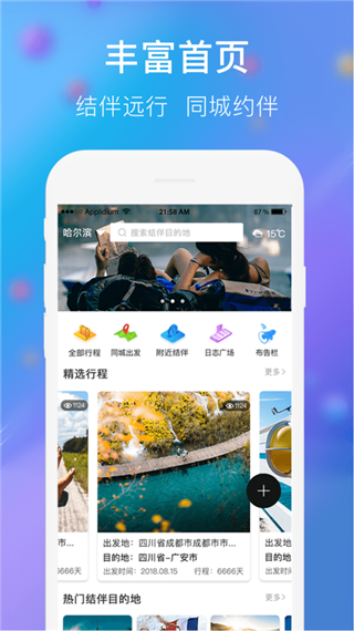 1.自助游爱好者的专属平台,提供结伴旅游的便利,让你随时发起旅游线路,找到志同道合的旅伴,让旅行更加有趣。