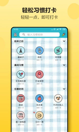 2、今天要坚持的习惯会单独呈现在 TODAY 页面中,轻轻一点图片即表示完成该习惯的打卡