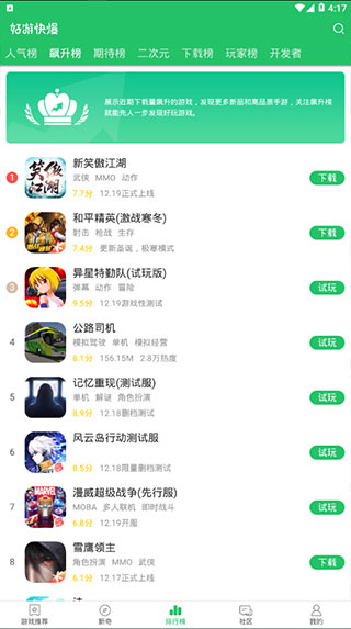 3、并且提供一个飙升榜单,让您了解最近一周热门的游戏;