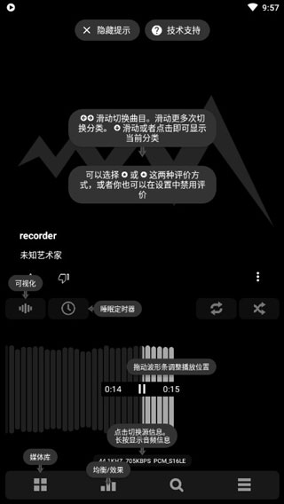 •如前所述,为下一首/上一首曲目滑动专辑封面,拖动更多类别更改(也适用于底部迷你播放器)