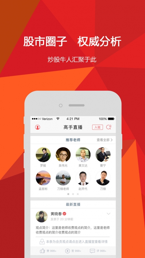 1、高手直播:操盘手和大V盘中在线直播,为您指点迷津、答疑解惑;