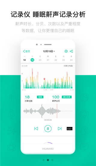 2、先进的鼾声检测算法,并记录鼾声音频样本,可随时回放了解打鼾情况