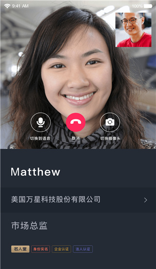 5、与私聊中心的好友视频,通过视频功能可以与好友或自己的顾客视频交流;