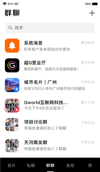 3、将群聊与私聊划分设立,私聊与群聊在不同的栏目中,方便切换进行不同的聊天沟通;