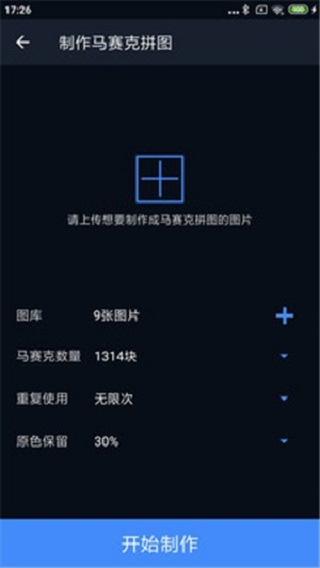 4、多种马赛克拼图工具,该编辑页面为用户设置了排列方式、马赛克数量以及图片重复等工具;