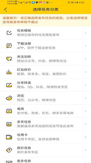 5、还可以选择app提供的任务分类,app就会根据您的选择进行推荐;