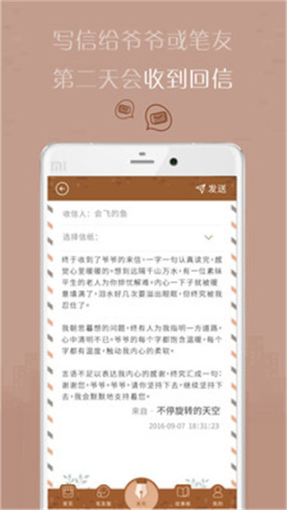 2.给爷爷或笔友写信,第二天就会收到回信。