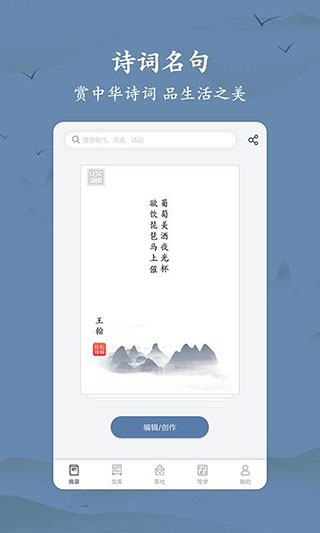 精选数万条诗词名句,一盏灯,一方印。此刻,只想安静的欣赏诗词、写字阅读 。