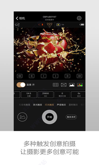 4、可通过声音、闪光和激光触发拍摄