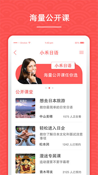 1、互动教学,及时纠正口语错误,轻松愉快学习最地道的日语口语。