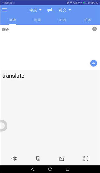 1、本软件操作也简单,你只要连接网络就可以快速翻译句子或者单词了;