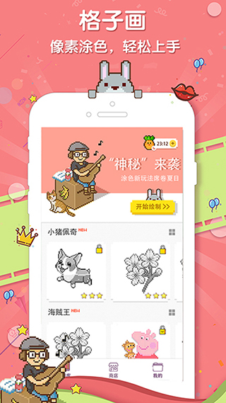 4.格子画app提供各种不同类别风格图案,漫画,动画,动物,独角兽等着色。