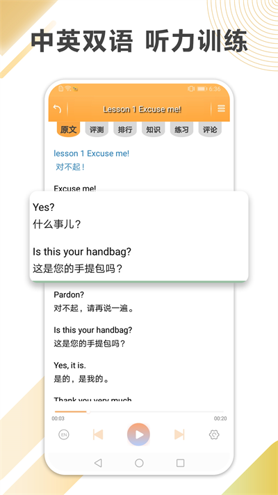 3、中英双语课文朗读,真人发音锻炼听力,领略英式美式英语的不同风采。