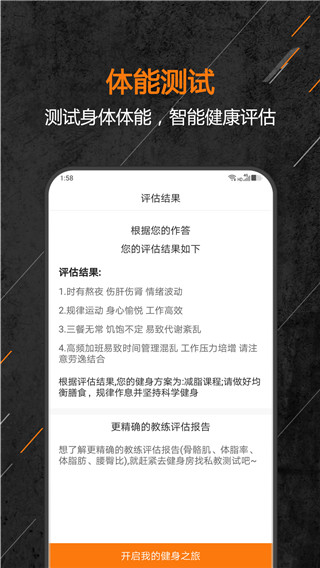2、体能测试:测试身体体能,智能健康评估定制线下健身课程。