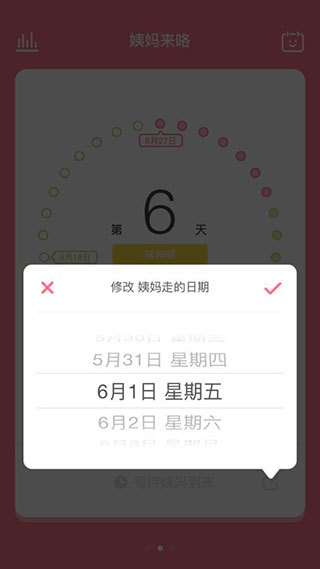 2、用户可以手动一键记录姨妈到来的日期和停止的日期,让软件中的其它数据统计更加的精确;