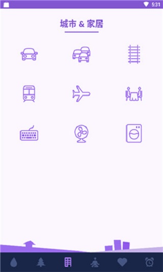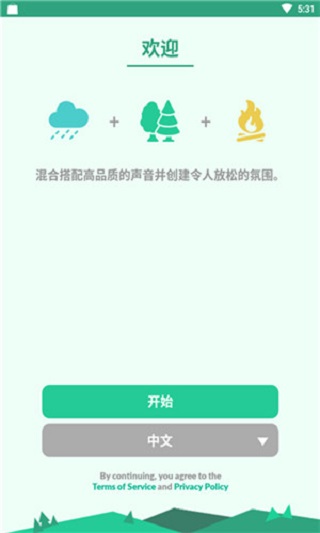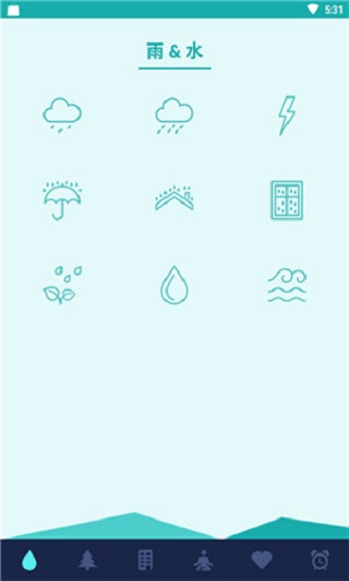 4、软件提供了四方面声音:雨and水、自然and深林、城市and家居、放松and冥想。