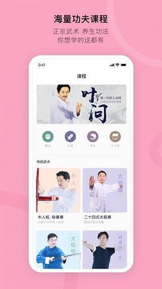 6、【汇聚各个门派传承人】:门派知名武师精心录制,课程专业易学,零基础入门不再慌!太极拳、咏春、峨眉、武当等功法应有仅有。