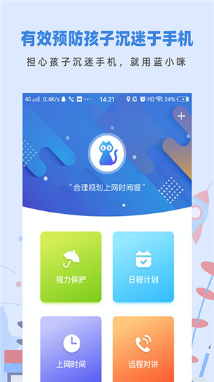 各位家长,你们的孩子如果有使用智能手机游戏的习惯,你就需要通过一个合理的引导,避免孩子沉迷在手机游戏中,而小编就为各位家长准备了蓝小咪家长端,这个软件为用户提供了非常强大的手机使用管理功能,用户可以在孩子的手机中安装这个程序,这样子,你就通过程序看到孩子在不同应用程序中投入的时间,而且加入了家长管理监控的功能,你可以设定手机网络的连接时间,让你的孩子可以充分控制个人使用手机的时间,让一种无须家长监控管理的方式,让孩子自觉养成正确的手机使用情况,所以针对还使用手机的问题,家长强制的干预并不能很好地解决问题,反而会引起反效果,所以对于用户来说,选择使用这个蓝小咪家长端能够为你提供不错的帮助,赶快使用吧。