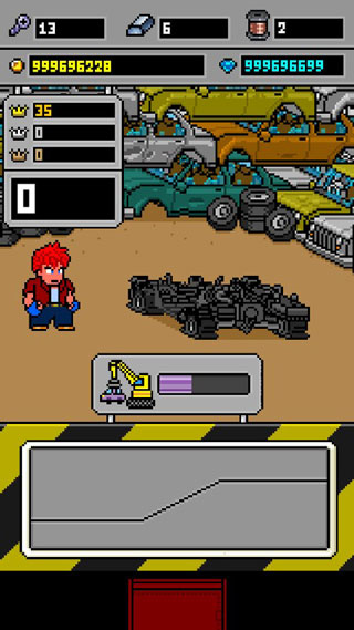 通过将旧车砸成碎片来获取建筑材料。该按钮上的手指越多越好。